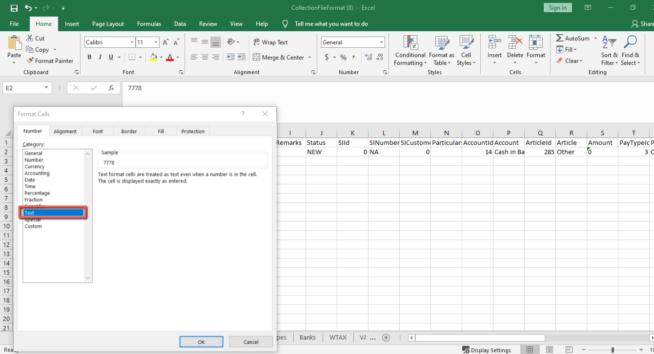 – if the Document Reference starts with a number but exceeds more than 10 digits, format the cell to Text to show all the numbers.