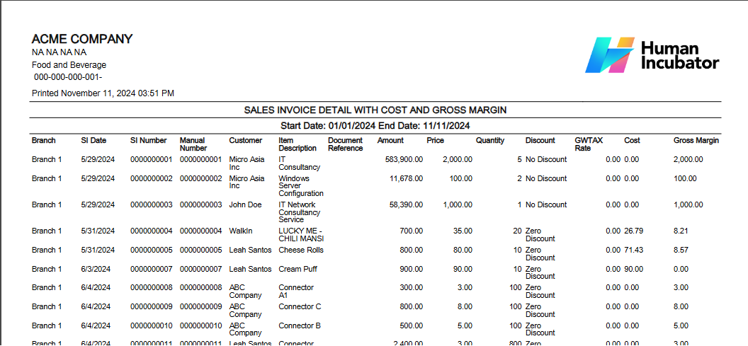 Sales Invoice Detail Report with Cost provides an overview or summary of sales invoice within a specific period that includes Cost and Gross Margins.