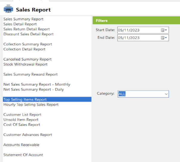 • is a document or summary that provides information about the best-performing or most popular items in a business’s inventory based on sales volume or revenue over a specific period.