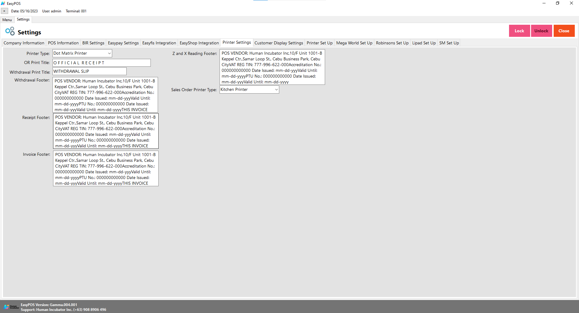 • This is where the user will set up for the output of the printer receipt.