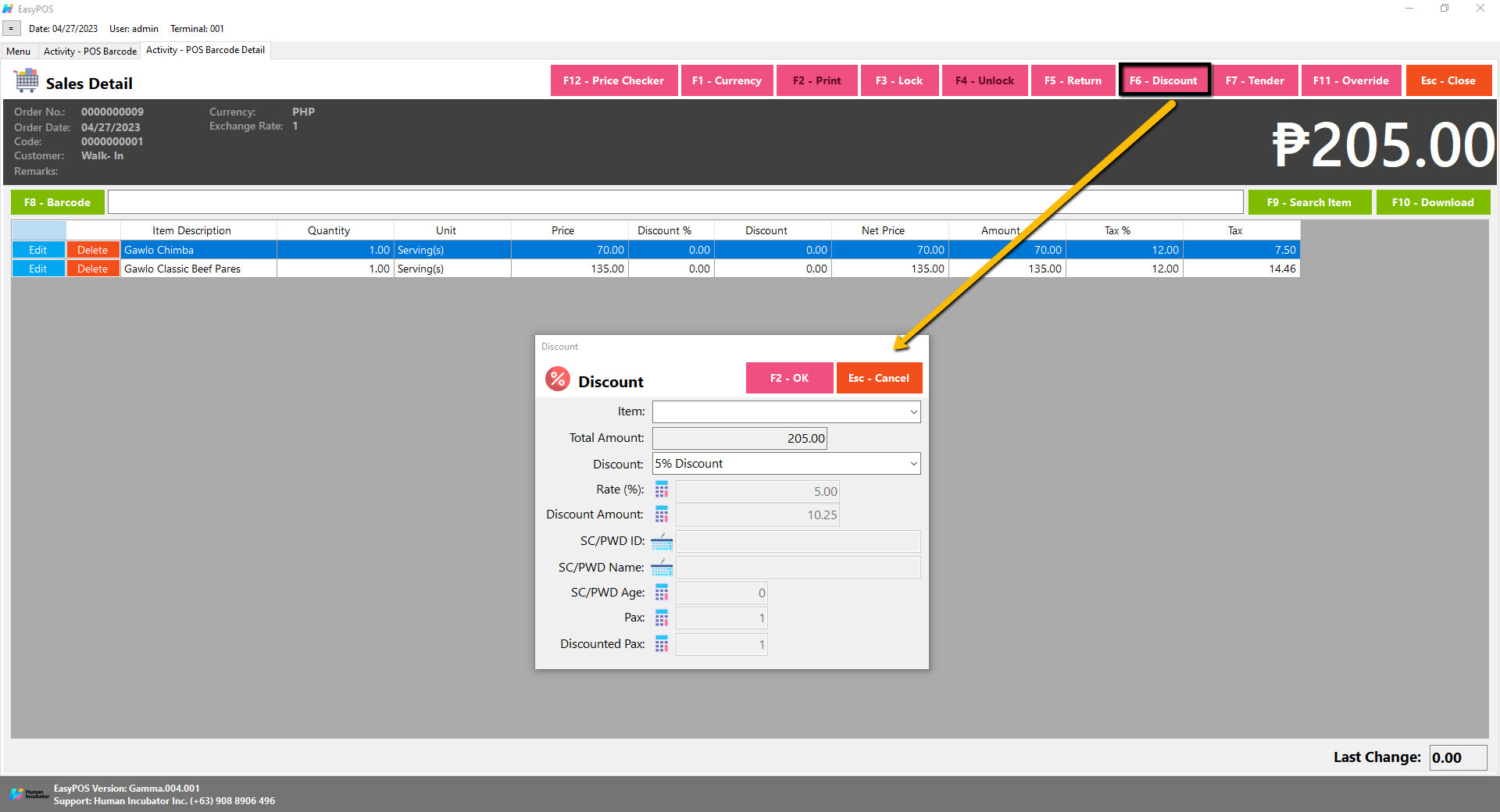 • Provide the correct barcode, then hit Enter key from your keyboard. Another way is to scan the item’s barcode then the item description with price will automatically display.