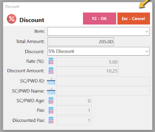 • Click the Discount button if you want to set up a discount for the sales line items. You can also set the discount per line item.