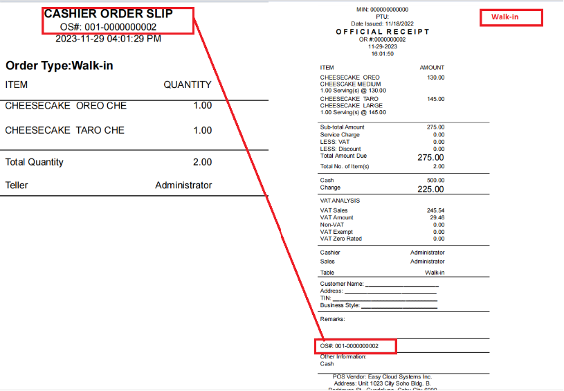 • Order Slip for cashier’s copy – same output of kitchen printout ( touch and quick service setup ).